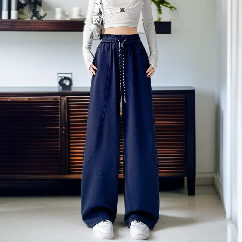안소 와이드 와이드 팬츠 일자 하이웨스트 트레이닝 팬츠 여 캐주얼 맨투맨 레드 스트링 팬츠